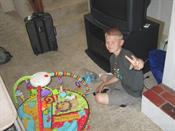 Zale enjoying a light snack after his big day on the beach.