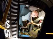 Zalethon before the Titanic deck angle exhibit.